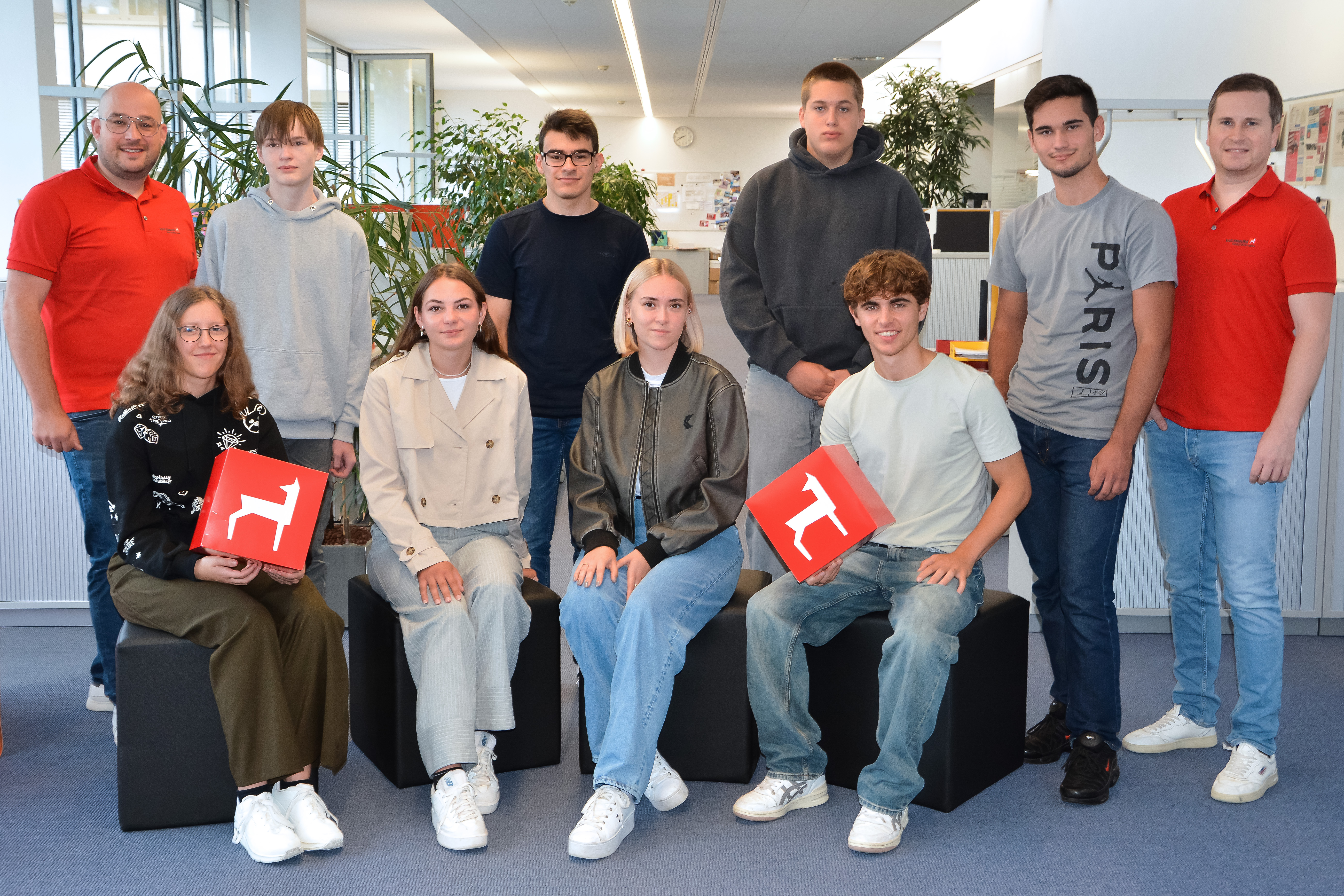 Die neuen Azubis und Studierenden starten in diesen Berufsfeldern: ein duales Studium BWL-Industrie, ein duales Studium Maschinenbau, eine Ausbildung zur Industriekauffrau, zwei Ausbildungen zum Mechatroniker, zwei Packmitteltechnologinnen sowie eine Fachkraft für Lagerlogistik. Diese Bandbreite zeigt die Vielfalt der Ausbildungsmöglichkeiten bei Karl Knauer – vom kaufmännischen über den technischen bis hin zum produktionsnahen Bereich.