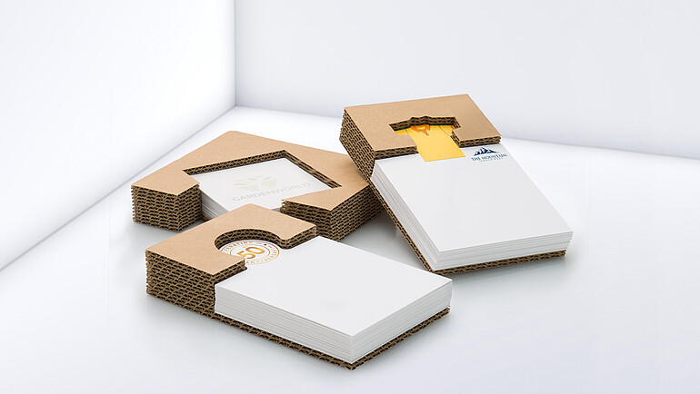 Unsere beliebten Haftprodukte bieten wir auch als konstruktive Sonderanfertigungen. Sei es bei Material, Veredelungen, Formen, Größen und Blattzahlen – nahezu alles ist umsetzbar. Besonders wirkungsvoll sind z. B. Produktnachbildungen oder Effektumschläge. Zudem lassen sich verschiedene Haftprodukte wie Haftnotizen, Haftmarker mit z. B. einem Schreibblock kombinieren
